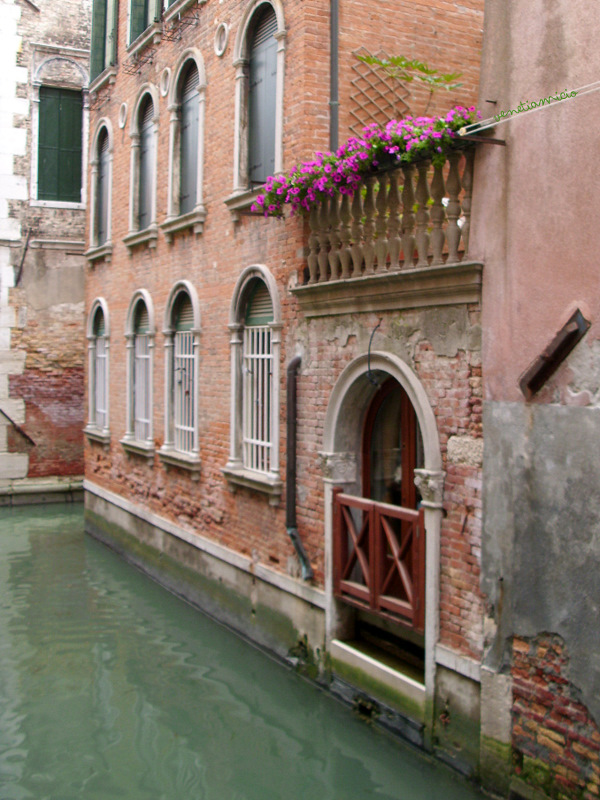 Un pont plus loin, mais toujours avec vue(s) sur le rio S'Boldo qui est la "frontière"entre S'Croce (à droite) et S'Polo, nous nous trouvons sur le ponte del Former. Le premier rio à droite est celui de le Pergola et celui sous le balcon aux volets bleus : rio S'Stae ...