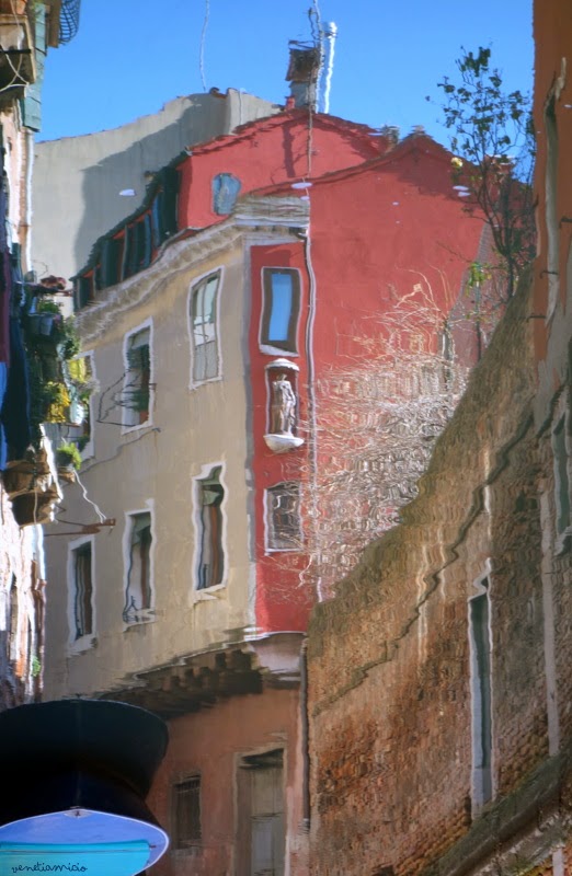 En quittant le lieu pour me promener un peu plus loin, le chat a quitté son banc pour se mettre à l'ombre, juste son oreille se dessine en ombre chinoise sur les dalles de la fondamenta.
